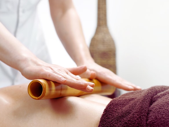Originální technika využívající hladké bambusové tyče různých velikostí pro masáž.